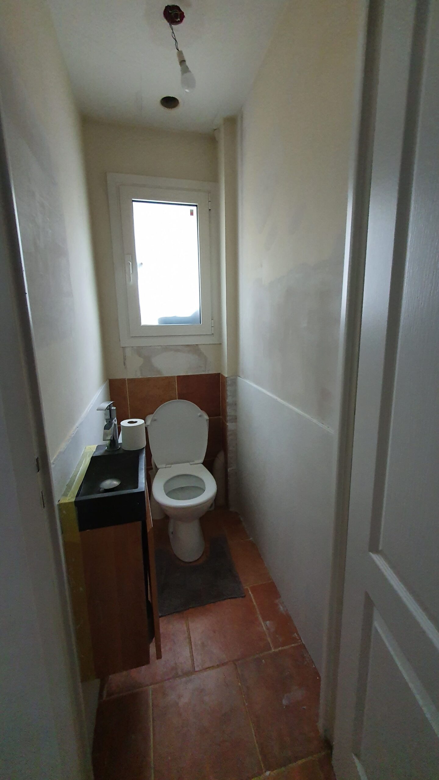 Les toilettes ont été changées pour un Wc suspendu noir et la décoration a donné du caractère à cette petite pièce souvent négligée.