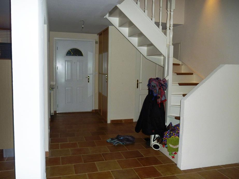 La grande entrée qui donnait directement sur le salon a été cloisonnée afin de mettre la porte d’entrée à distance et une verrière y apporte la lumière en second jour.
